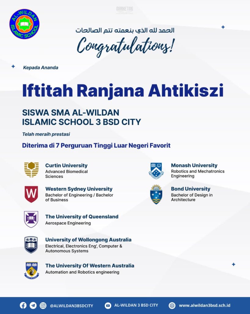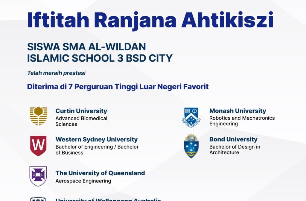 TABLIGH AKBAR AL-WILDAN ISLAMIC SCHOOL 3 BSD CITY bersama Ustadz Dr. Khalid Basalamah, Lc., M.A.Februari 28, 2026 Diterima di 7 Perguruan Tinggi Luar Negeri Favorit Share0 Related postsJuni 13, 2021Prestasi ENGLISH tingkat negara ASEAN 2021Read moreJuni 13, 2021SMALBESD VIRTUAL EXPORead moreJuni 13, 2021Juara 2 Olimpiade MIPARead more